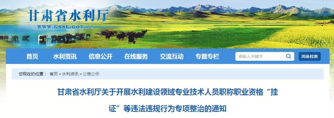 日前,甘肃省水利厅也正式发文关于开展水利建设领域专业技术人员职称职业资格“挂证”等违法违规行为专项整治的通知。