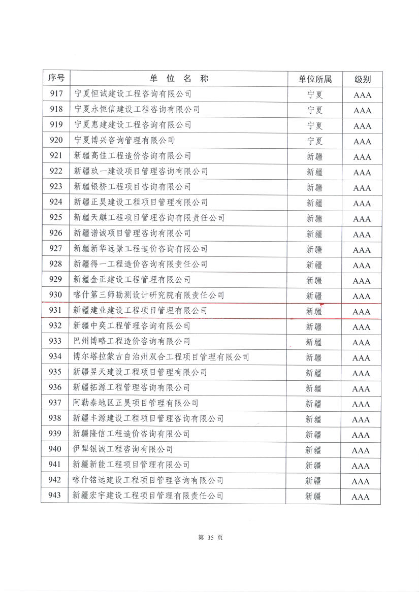 关于公布2018年度全国工程造价咨询企业信用评价结果的通知